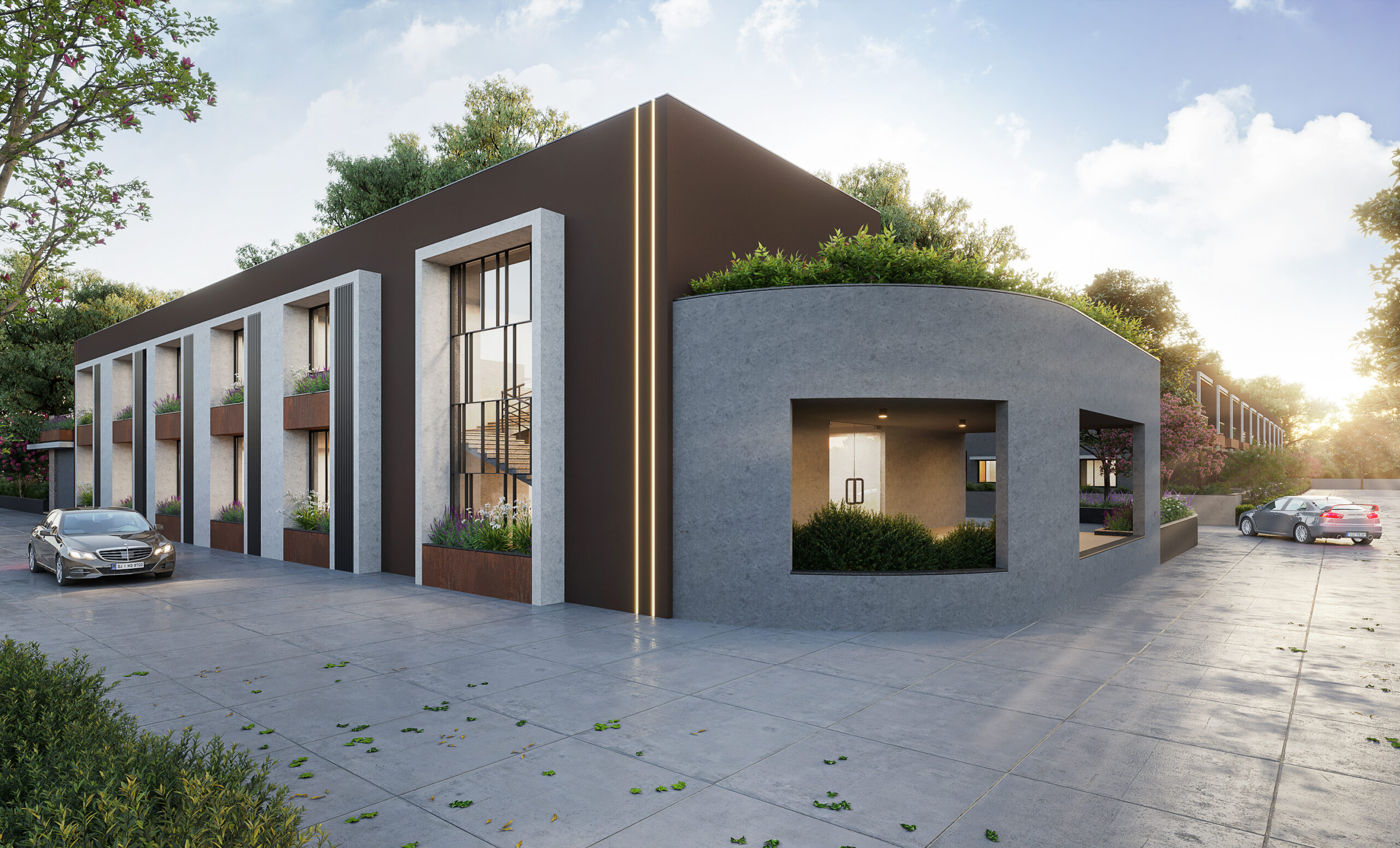 The project features premium aluminum-section windows designed for durability and smooth operation. Quality fittings and hardware ensure long-lasting performance, while the sleek, contemporary finish adds a modern and elegant touch to the interiors.