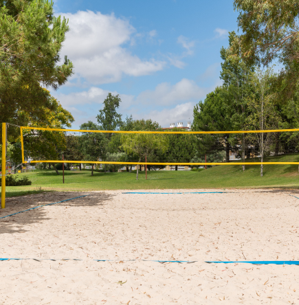 Spacious volleyball court with a smooth surface and proper net setup. Ideal for sports lovers and outdoor recreation.