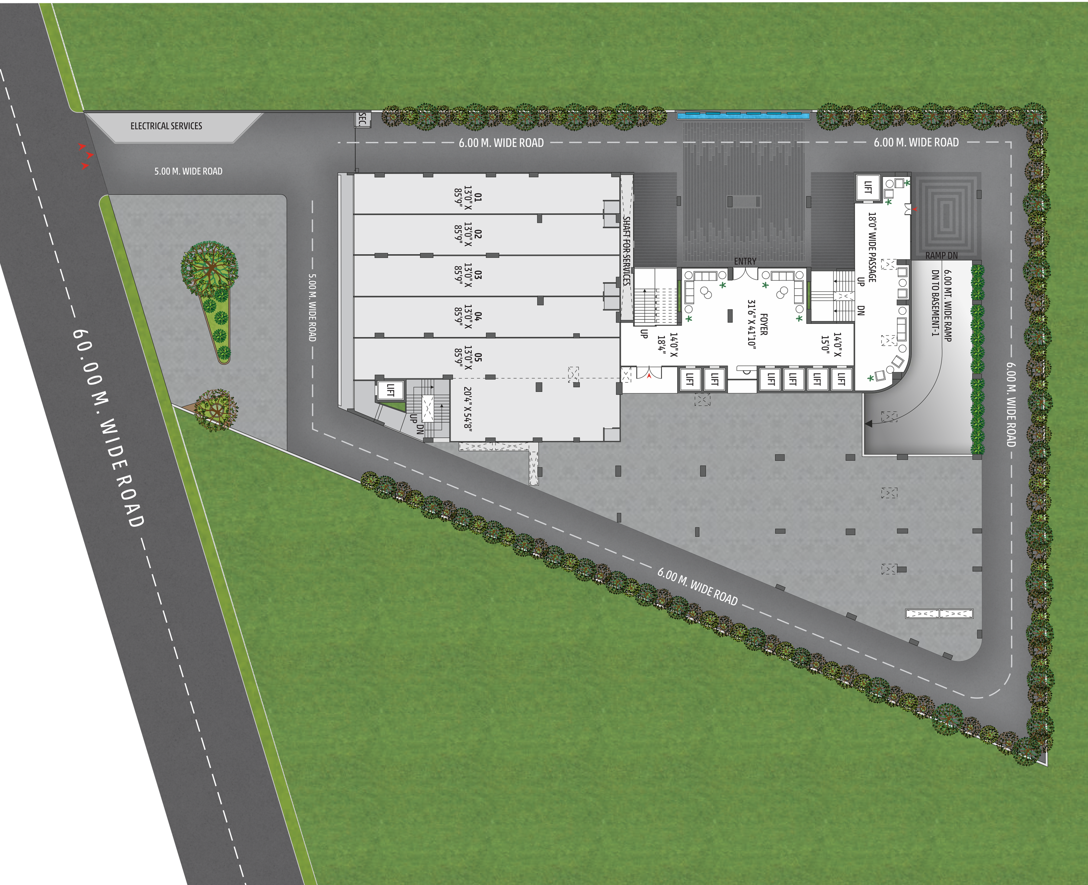 The structure features an earthquake-resistant R.C.C. frame designed as per the latest IS seismic codes for safety and stability. High-quality concrete and durable steel ensure long-lasting strength, while precision-engineered columns and beams provide excellent structural integrity.
